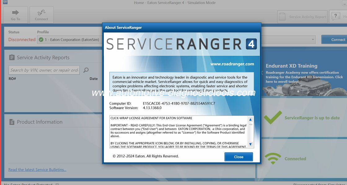 1.Eaton Service Ranger 4.13 is a diagnostic and service tool for Eaton automated transmissions.
